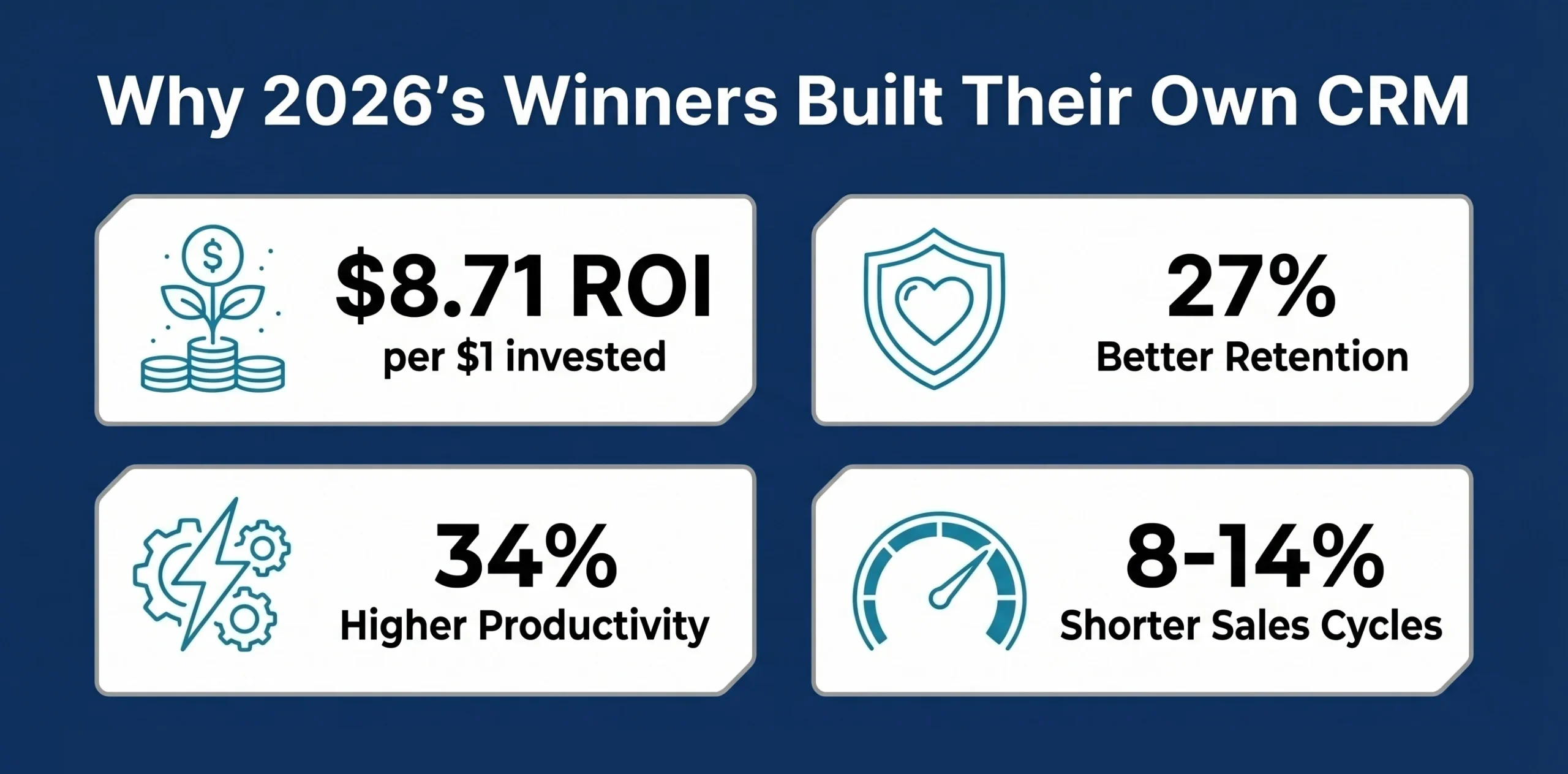 The data supports it fully. CRM investment returns an average of $8.71 for every dollar spent. Customer retention improves by up to 27%. Sales cycles shorten, team productivity climbs, and the recurring SaaS fees stop compounding. The businesses using a custom CRM as their secret weapon are not doing anything extraordinary — they simply made a decision that their direct competitors have not made yet.